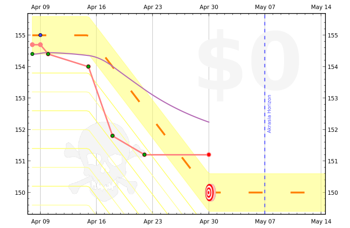 This line is a week away from now. You can only make changes in the steepness of your red line beyond the akrasia horizon.