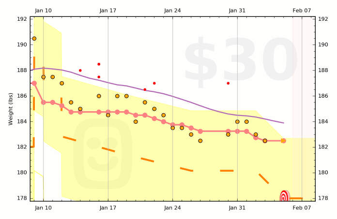 Think of this as a very thick line charting your progress or an aura around your actual data. It's like the moving average line but fatter and smoother, and it extends past your actual data as a kind of projection into the future, in case that's useful. (Gory details on the blog.)