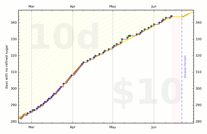 sweets: any home-made goods that count as dessert, anything without nutritional labeling that's probably got sugar added, anything with fake sugar substitutes added. Juice. Simple syrup. Soda. Candy. Dessert. Tomato soup. (need a good concrete % of calories from sugar or grams of sugar per serving limit).